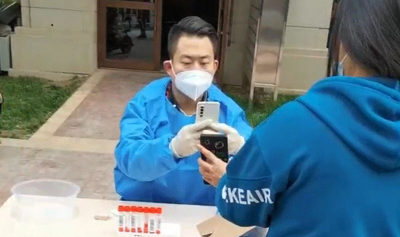 在核酸檢測現(xiàn)場志愿者們參與錄入信息、維持核酸檢測現(xiàn)場秩序、小區(qū)卡口執(zhí)勤等防疫工作。他們仔細(xì)核查每一位臨檢人員的健康碼和行程碼,提醒居民佩戴好口罩,保持一米線間隔距離,幫助老人和有需要的居民進(jìn)行身份信息驗(yàn)證,保障臨檢人員有序進(jìn)行核酸檢測。